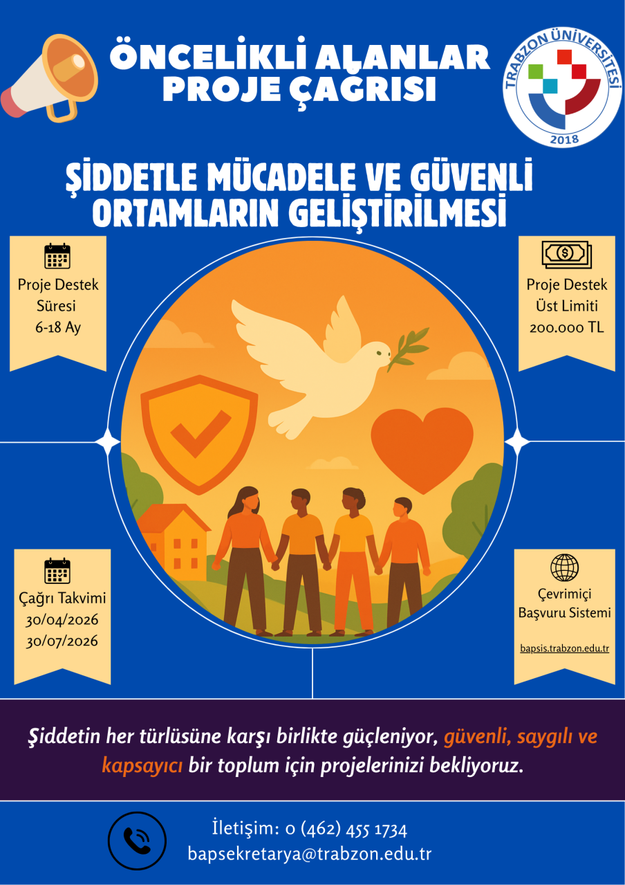 Bu çağrı kapsamında; bireylerin güvenliğini artırmayı, şiddeti önleyici mekanizmaları güçlendirmeyi ve kapsayıcı sosyal ortamlar oluşturmayı hedefleyen bilimsel ve uygulamaya dönük projeler desteklenecektir. Özellikle erken uyarı sistemleri, dijital şiddetle mücadele, eğitim ortamlarında güvenli iklim oluşturulması, psikososyal destek hizmetleri ve çok paydaşlı iş birliği modelleri gibi alanlarda geliştirilecek çalışmalar öncelikli olarak değerlendirilecektir.